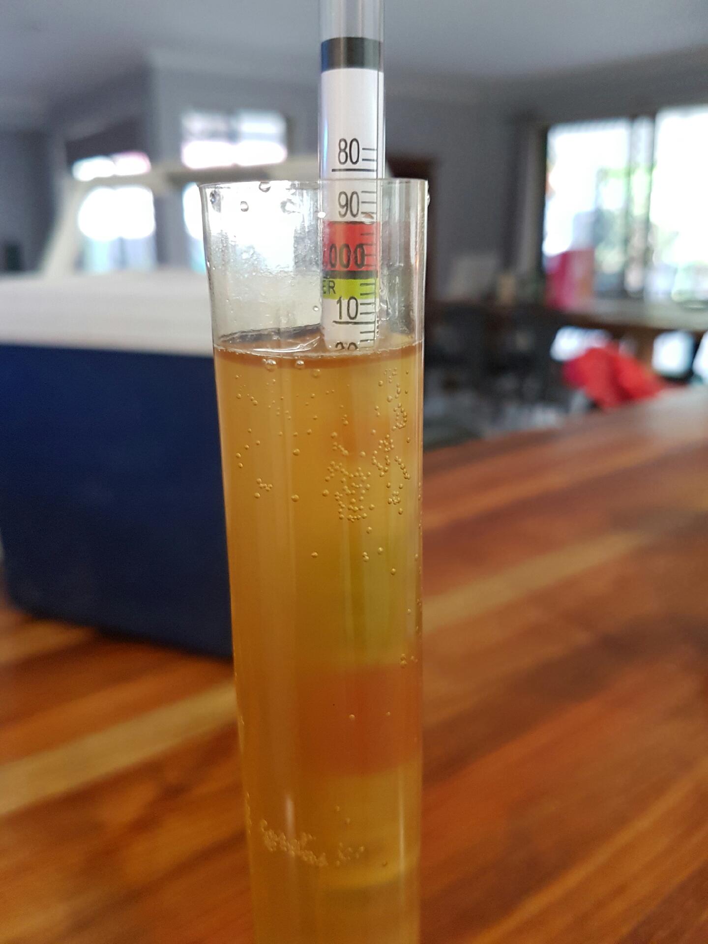 So is that your hydrometer reading 1.040 at that measurement it's got a bit to go. It should finish around 1.010 or 1.008.