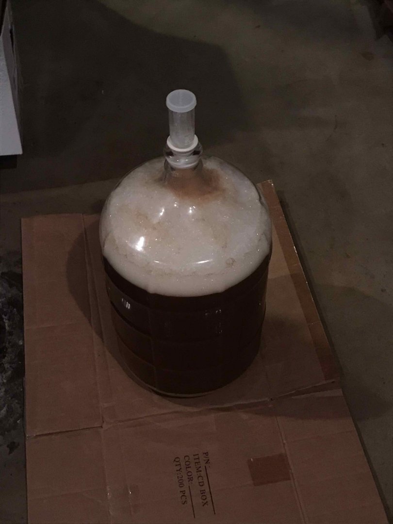 Finished and moved bottle downstairs to utility room (where I also did the first primary fermentation); room temp is btw 62ºF (avg overnight) to 68ºF (avg daytime). Initial movement was slow--sediment had moved to the bottom but very little activity. When I went to bed a few hours later, I checked it and the yeast appeared to be working a bit more. By morning, though, it was much better--more than I had ever seen with the first brew. Now, a few hours later, the airlock is bubbling--slowly, but consistently. Photos attached--the first is from 8am this morning, and the other two from 30mins ago, just after 1pm today).