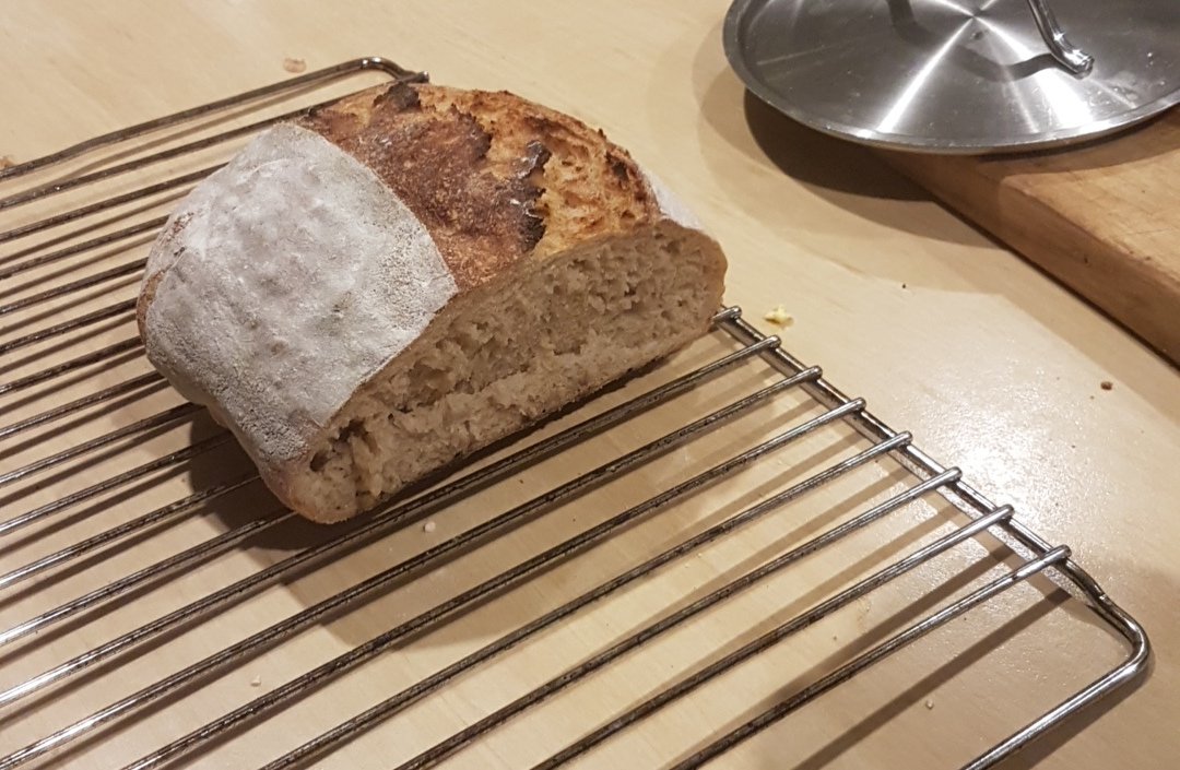 I used my starter spoils and some spent mash along with some Flishmann's yeast and 3 rises! Can you say CRUSTY?