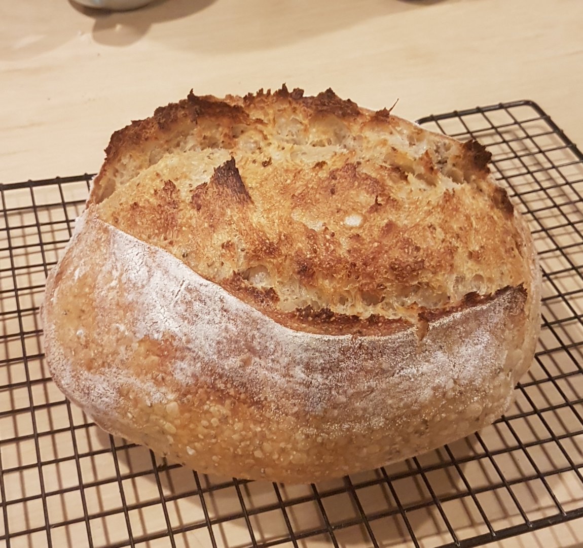 That's a damn fine loaf! Nice!Thanks to @Herm_brews, I remembered to feed my starter and bake a loaf. This one's for you Herm.