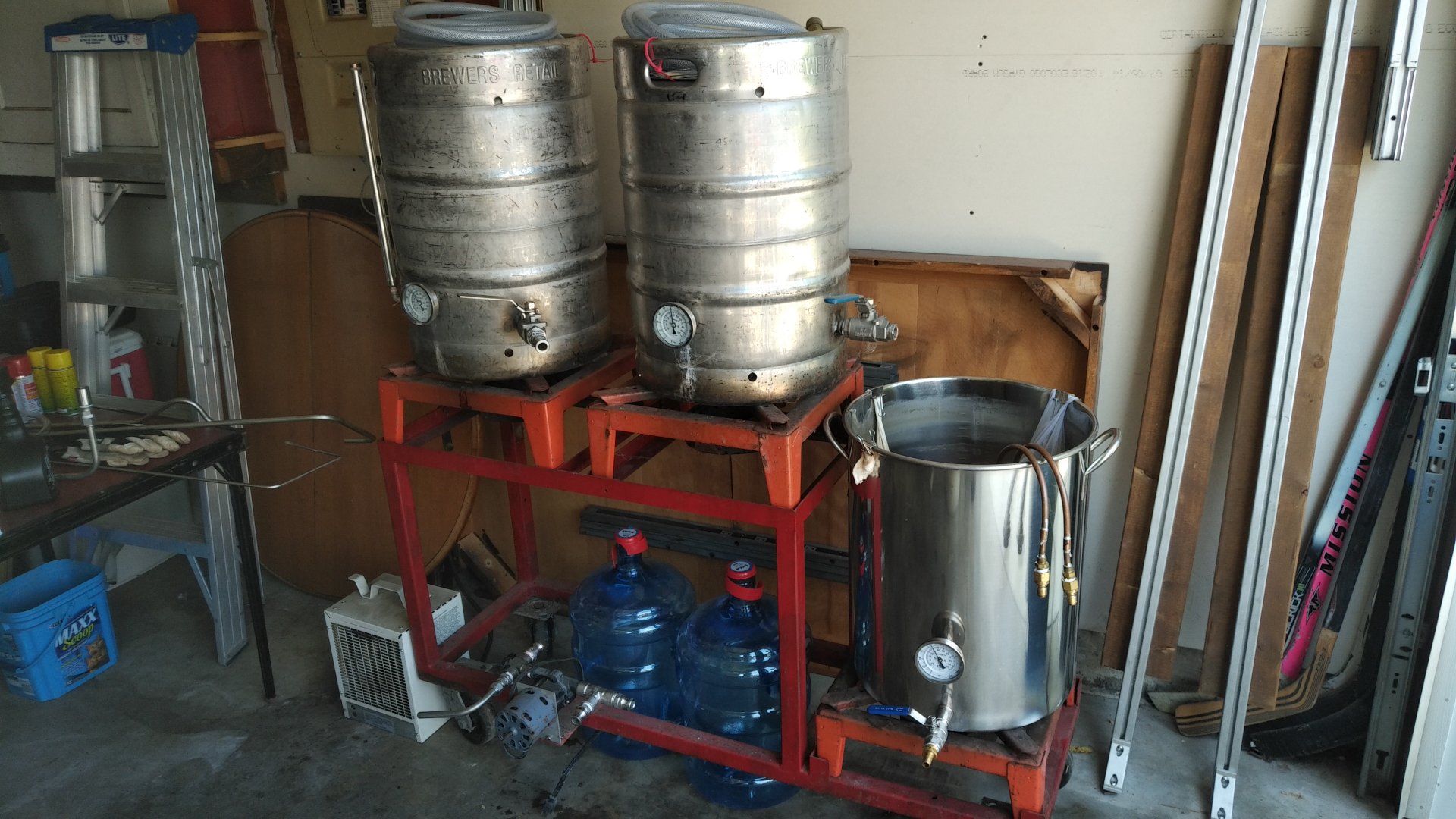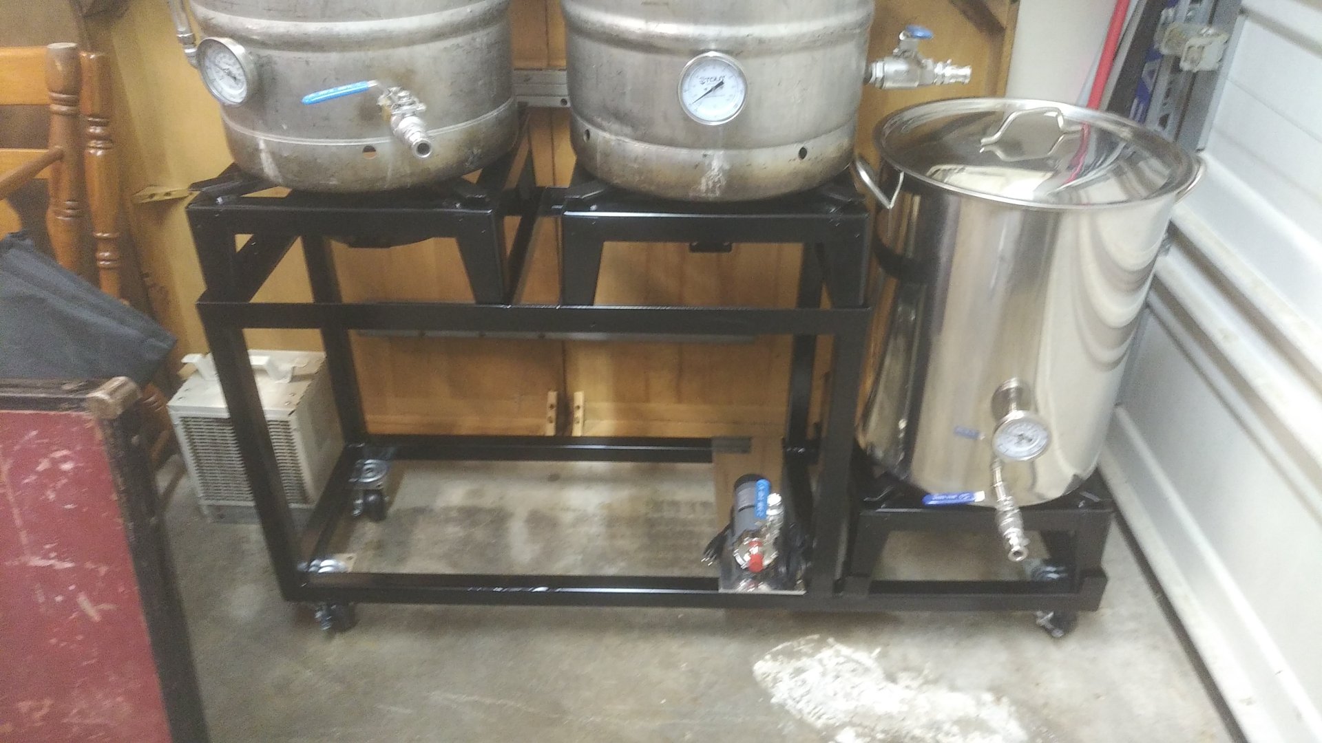 Thought that I would start a new thread to show what I am getting myself into and solicit advise on setting it up. I don't know if the pump that came with it works or not yet, but I do also have a little Anvil pump. Anyway three vessel, three burner system, going to utilize the new 15g kettle the kids got for Fazhas day for the boil, as well as to transfer strike water up to the HLT. Will also need to pump the wort into the fermenters. Going to move my ferment fridge that is in the basement out to the garage, and get second ferm fridge so I can ferment another batch while cold crashing.
