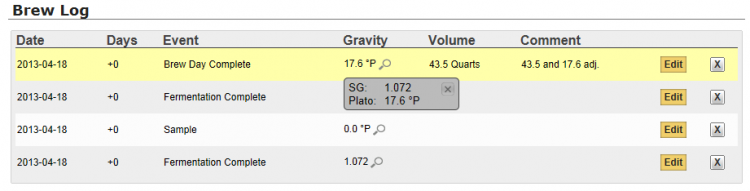 At this point, we could also have an additional field that lets you pick the unit you want to log it in. The brew log will display the gravity in the unit it was logged under. I can see how that would get annoying if multiple units are used throughout the logging process.
