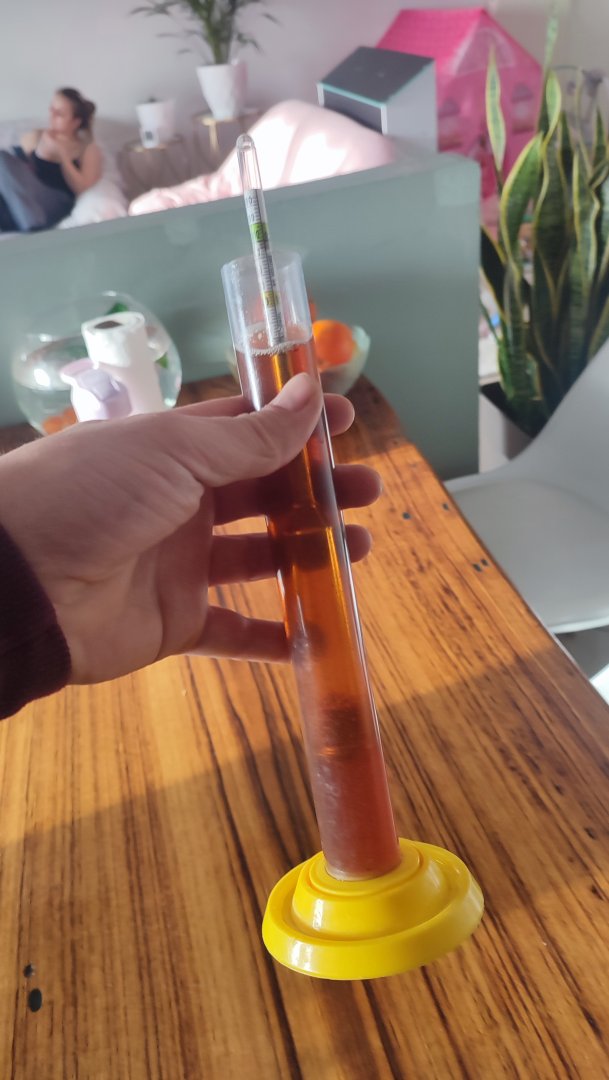 The yeast is already in!!looking good. I wouldnt worry about 1 liter loss. your gravity is really close. that is more important.