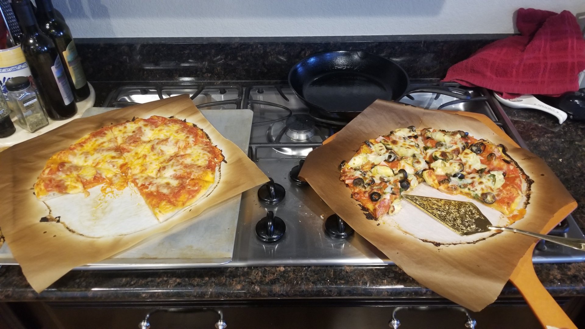 How does the bottom of the crust come out on parchment paper? What Temp?Granddaddy's Favorite... Pepperoni for the kids, a more complex pie for Grandmommy and me. View attachment 11083