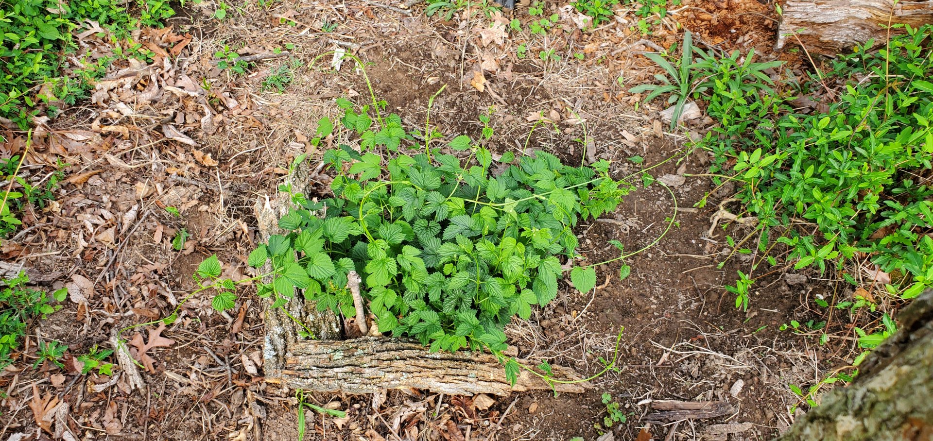 There's a little cluster of sprouting bines between the 2 perpendicular logs....oh well...