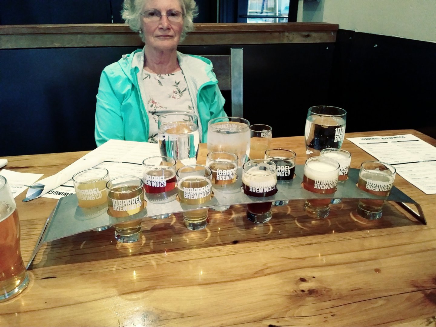 Wowie they had some drinking to do bob and what a fine gentlemen you are shoffering around the ladiesI was the DD today, so only had a couple sips until we got to 10 Barrel, about a mile from where we're staying. Had lunch and a pint of Apocalypse there. Daughter was glad to be able to drill since I was driving. She ordered their flight of 10 and finished it after sampling at 2 other breweries and a pint of cider. Definitely related to me.