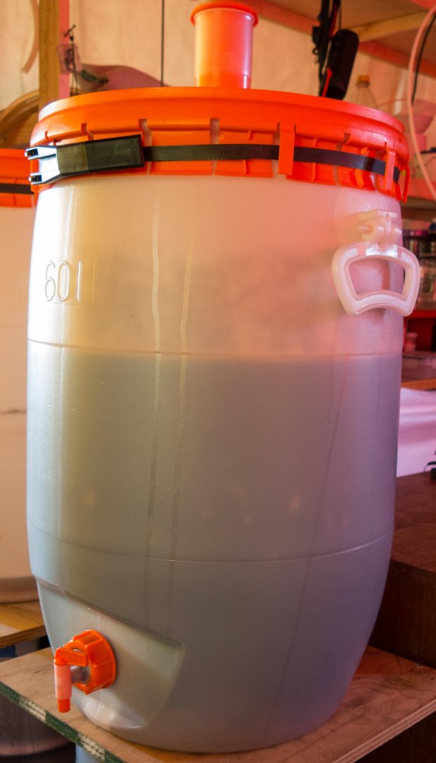 Here is a photo of the fermenter after 16 hours, showing a nice ring/stain mark of the krausen.