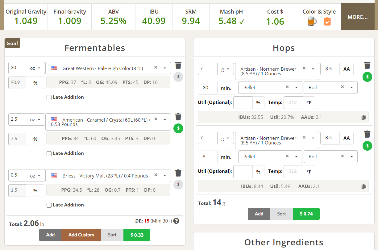 But when I use it in the recipe calculator, the DP is listed too low for conversion (grain bill copied below). I feel like I've seen other brewers have this problem when using Vienna as the base malt, or something similar.