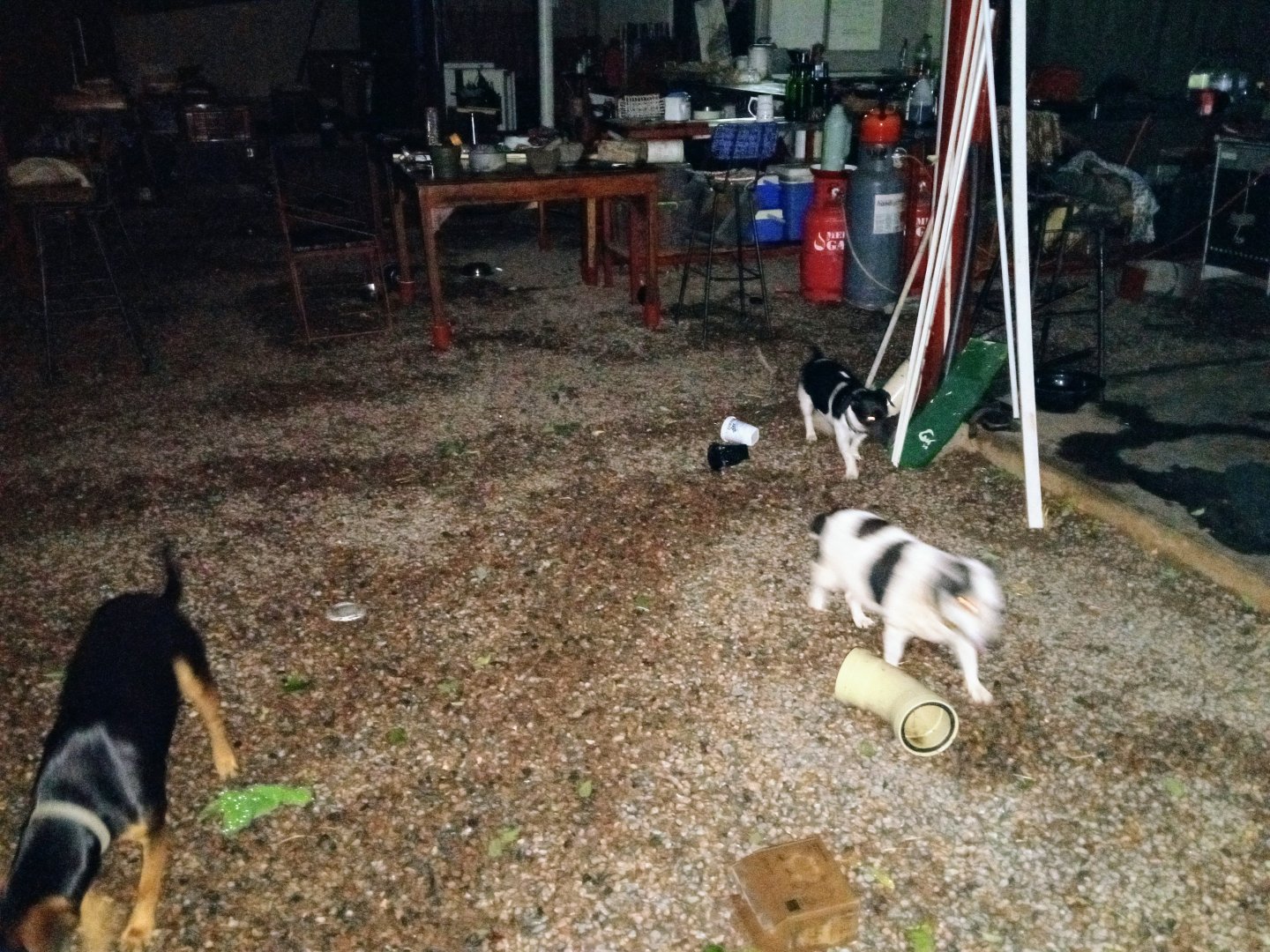 I see the dogs are helping clean up.Heavy heavy storm came through...