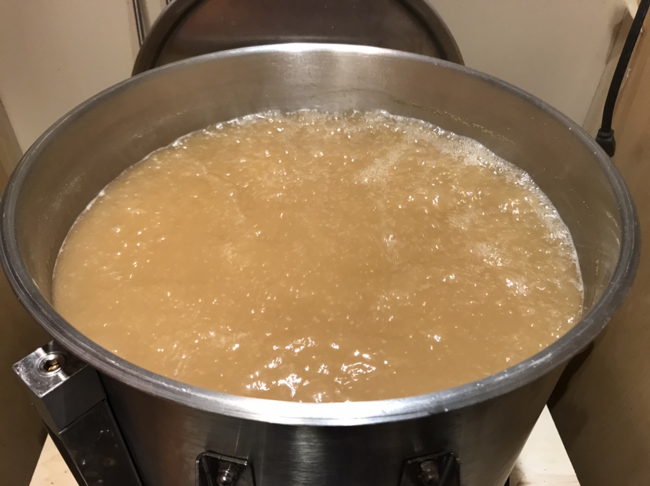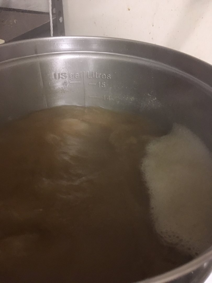 Lactose at 20 to go? Oops I see dextrose mmm something different there bob interestingAbout 30 minutes in. Pre boil a bit higher than planned. (1.042 vs. 1.039) The plan was CTZ for bittering, but my inventory was off, so used Warrior instead.