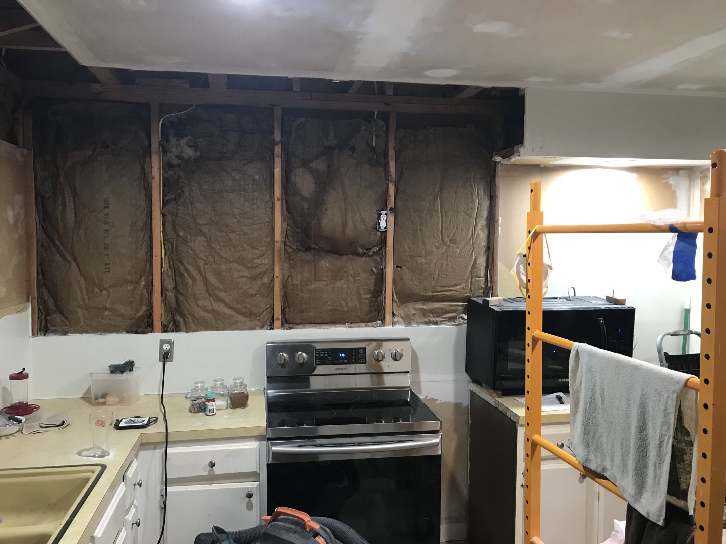 The attic is blown rock wool. I’m probably going to have new stuff blown after I finish the remodeling and get the ceiling closed back up. I’ll have to make sure I don’t get idiots that cover the outside soffit vents and stop the airflow in summer. The bat in the wall is R11, according to the printing on the very brittle backing. Not worth tearing down all the sheet rock for a couple more digits, but I still have some R14 that I plan to use to replace what I’ve exposed. NONE of the walls were sealed behind the cabinets, so you can only imagine the mess from cockroaches (waterbug or wood roaches) coming and going at will. Thank the heavens it isn’t the little brown German roaches. There’s several spots where the old batting has settled leaving the top edge of the wall open. I had vinyl siding done about 8 years ago which included 1/2” thick underlayment, so some improvement done then. If I weren’t living here and was remodeling with a blank check, I’d GUT the house and start over, including replacing all the insulation, completely overhaul the electrical system and plumbing, etc. But we don’t have that kind of time or somewhere else to live in the meantime. I’ve already done a few things for efficiency. Double pane windows, ridge vent on the roof, siding with underlayment, new HVAC and water heater with better EER. I’d have to own this place a lot longer than I’ll live to get any significant ROI. As for the roaches, when I get done with the work, they’re gonna have to use the door like the rest of us do, and better get my permission (which of course will not be granted and will more likely be met with a blast from the Bug-a-Salt gun my stepdaughter gave last Xmas). All the activities seem to have already made the roaches realize they should be somewhere else. I’m not a very welcoming host to some uninvited visitors. The primary traffic appears to the wall behind the stove, which had several holes in it from lazy installation work as well as large gaps in the drywall from not being properly finished before installing the cabinets. Finishing is time consuming and expensive, I get it, and making a buck is the name of the game and n home construction. But I’m my grandfather’s grandson, and I go ballistic when I have to fix sloppy work that was done wrong to start with. He was a cabinet maker/carpenter, and I had the privilege of working with him between high school and college and got a lot of invaluable experience through his tutoring, strangely enough about the time this house was being built. The building trade was already in trouble then. Quality craftsmanship is truly a thing of the past in the building trade because of the pressure of profit margins. So it’s up to owners to fix the screwups left by poor craftsmanship and “blind” building inspectors. IF owners have any clue about what they’re looking at. The difference between “acceptable” and “right” ways of doing things is a very wide gap, and only seems to be getting wider.