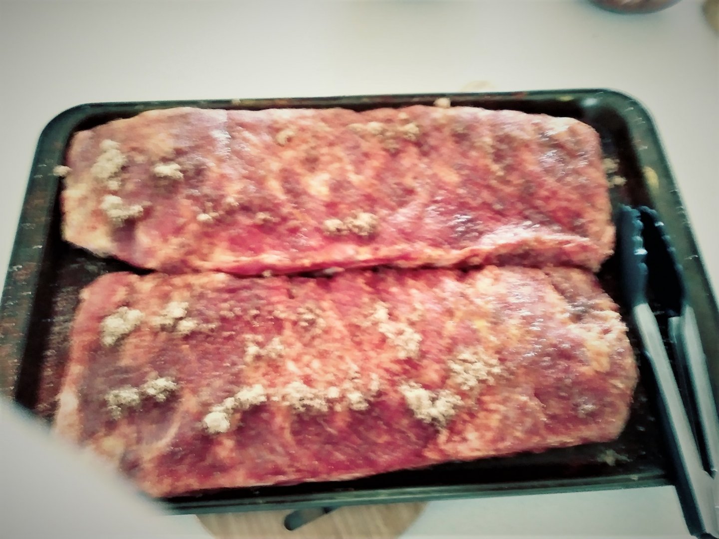 A couple slabs of St. Louis Ribs. Wife die some of her awesome mac & cheese too. Ribs were a little more done than I like. Actually falling off the bone, but delicious. Recipe PDF below.