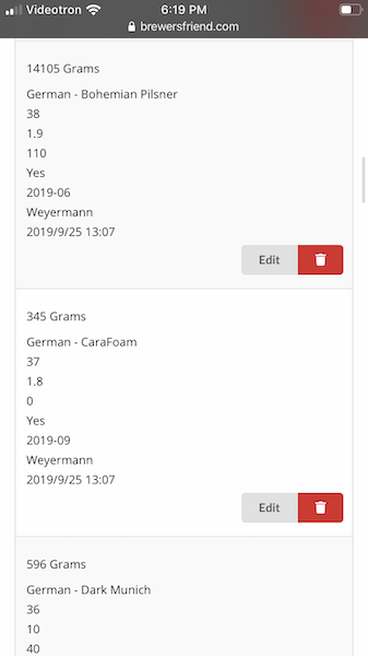 Change the table of calculated options on the left to a couple dropdowns for alternative formulas. There’s no need to see the calculated values of all for color/srm formulas at the same time. This will allow the more section to be shrunk down some and not eat up so much vertical space. Low priority.