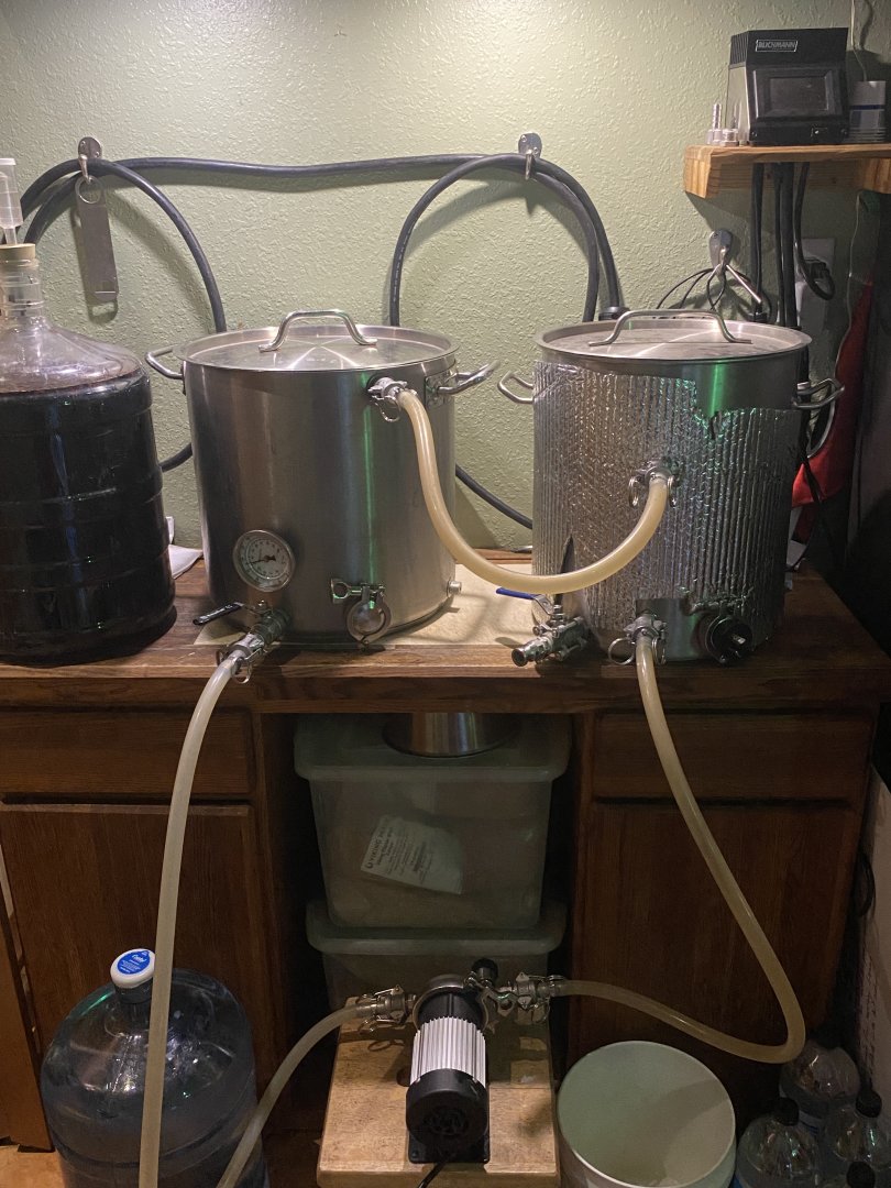 Didn’t brew. Missing ingredient arrived too late. I did decide to bail on 2v setup with the false bottom over the element in the mashtun. Switched back to 3v herms setup. Just wasn’t doing much on time savings and I missed og by 4 points last brew. I’ll likely biab sometimes. Maybe I could do a 2v with a rims tube. Hmmm.