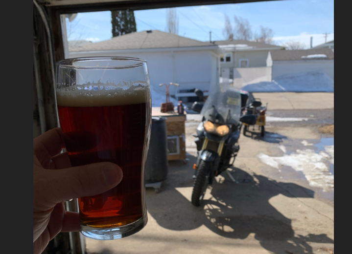 Gooses Gander Red IPA from Analog Brewing here in the city. Damned tasty beer, bought a 30L keg of it to support the local boys.