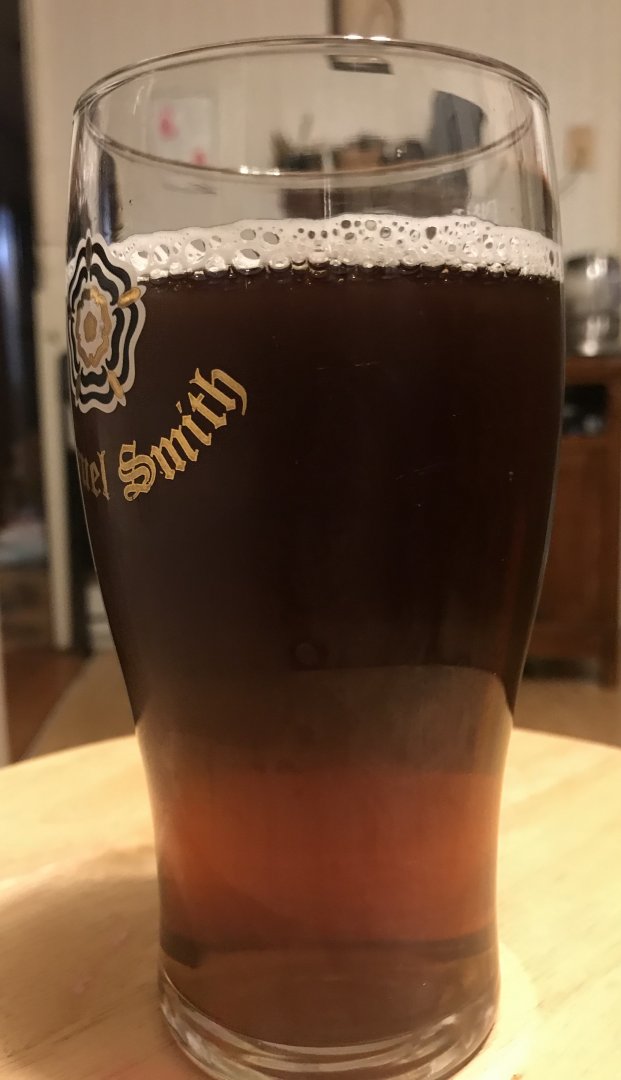 First pull of the Brown Lager. Drinkable, but not quite ready yet. Lots of coffee flavor, a slight smokiness, definitely bitter with a sweetness on the finish