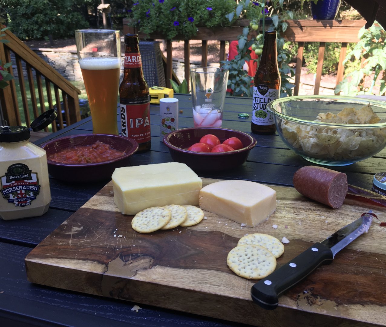 That looks like a great feed!At the brother-in-law’s for a cookout. Good food, beer and a bit of cornhole. I was in charge of the beer.