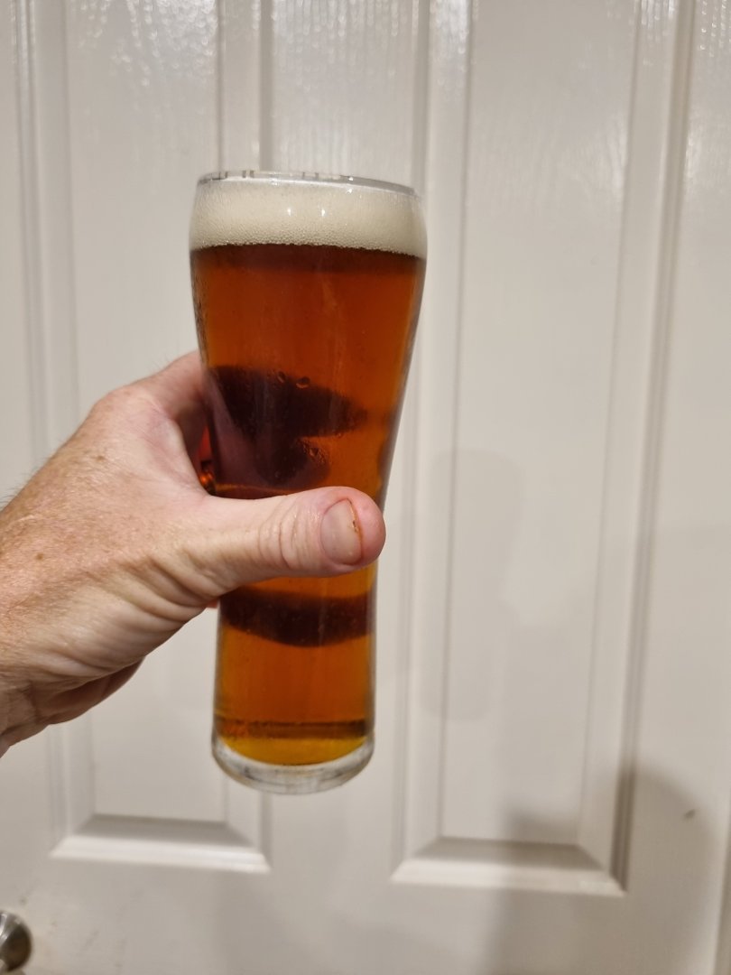 Havin' one of my new Chocolate Oatmeal Stouts right off the shelf, unchilled as I run the last batch sparge on my Frankenbeer II. Probably around 65F bottle temp. We haven't been running the HVAC for a couple weeks now (too nice outside for that), so it may be slightly warmer under the stairs than normal, but good for the conditioning. It's purty darn good that way, and I reckon it would be the way it's drunk in the UK. Very tasty. Got some fizz but could use another couple days conditioning. Looking to have a decent head, too. Just popped the top on one to see how it's doin' after 3 days. Quite yummy, and maybe won't make me stupid quite so quick since it should be a much lower ABV with the FG being so high. I was right, the malt is peeking out after a little conditioning and some carbing, and the bitterness from the dark malts is dropping off a bit. Doesn't quite taste like Community Coffee (re: Cafe' Du Monde in New Orleans) anymore. Less charred, more fresh coffee like.. Kinda weird how some of this stuff works. Ain't chemistry wonderful?