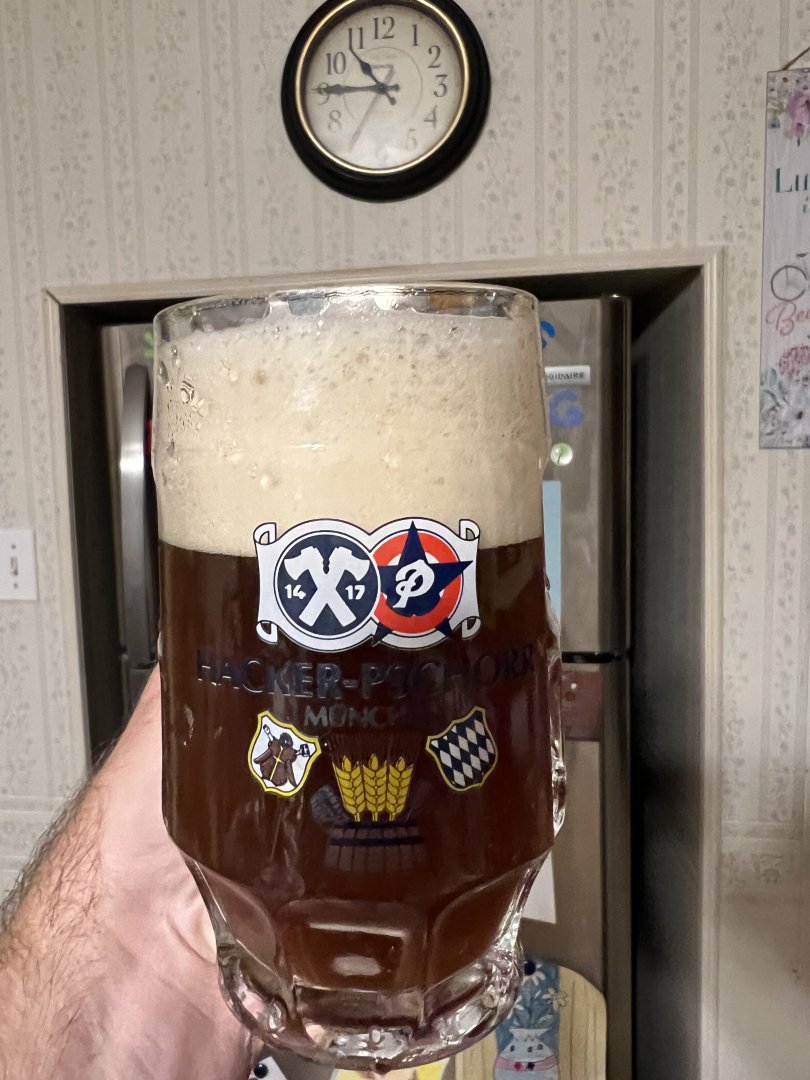 Had one of these yesterday. It's my 2nd annual Oktoberfest. Technically speaking - it is a Munich Dunkel - 100% Munich Malt, double decoction mash... Fun recipe to make but a good bit of work. Been in the keg for about 6 weeks now, so it's dropped fairly clear.