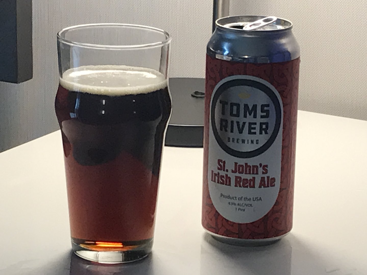 Traveling again, so more commercial beer. This is St John's Irish Red Ale from Toms River Brewing in NJ. Nice beer, plenty of Maris Otter maltiness, just a touch of EKG bitterness. And that color!