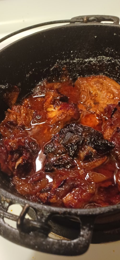 Oh yeah this is the dinner thread. Finished the smoked rib leftovers we had a couple day ago. Heated back up on the BBQ. They were great.