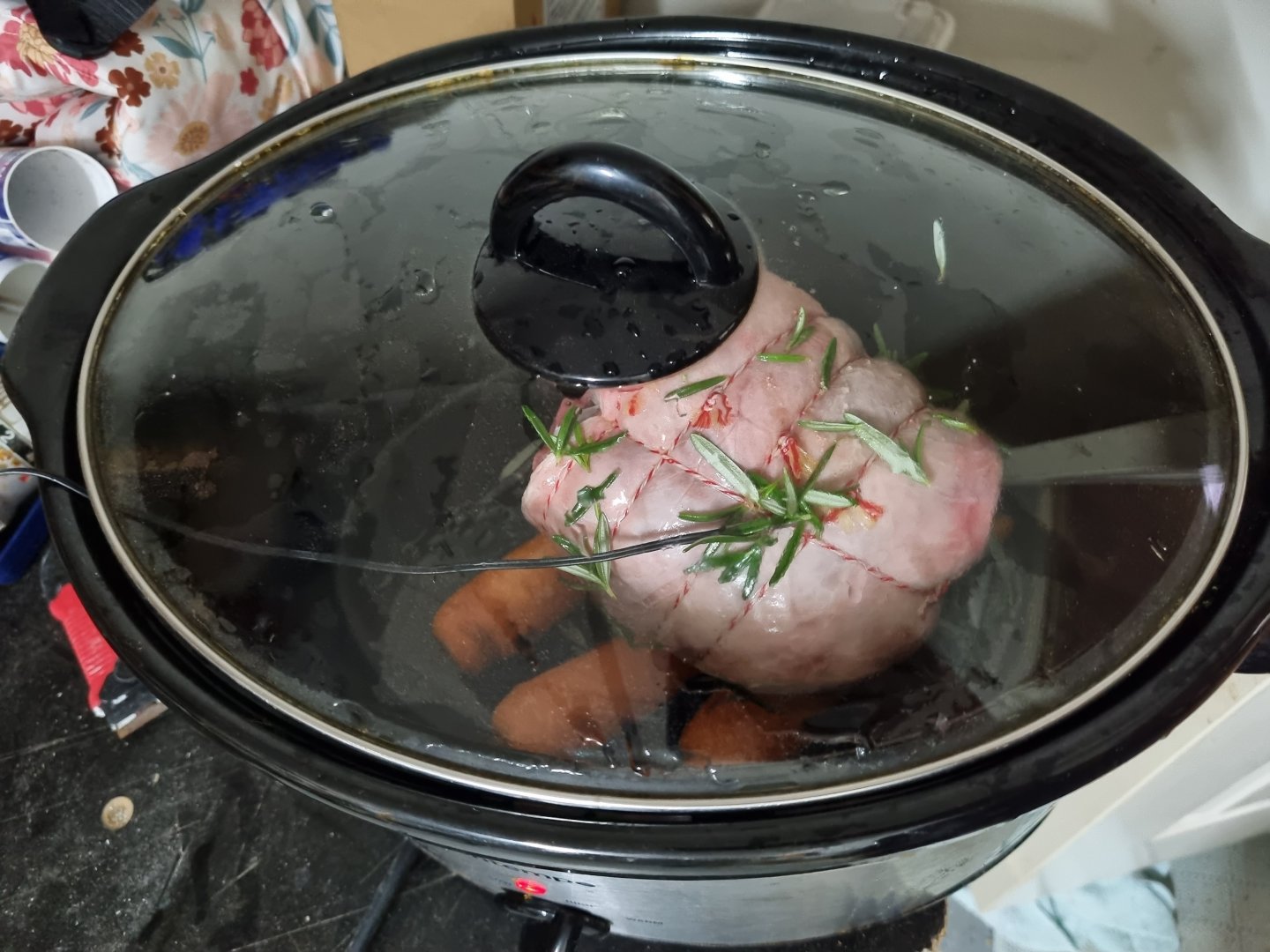 Objective to have the roast cooked low ready to be finished in the oven this arvo in like 10hours time.