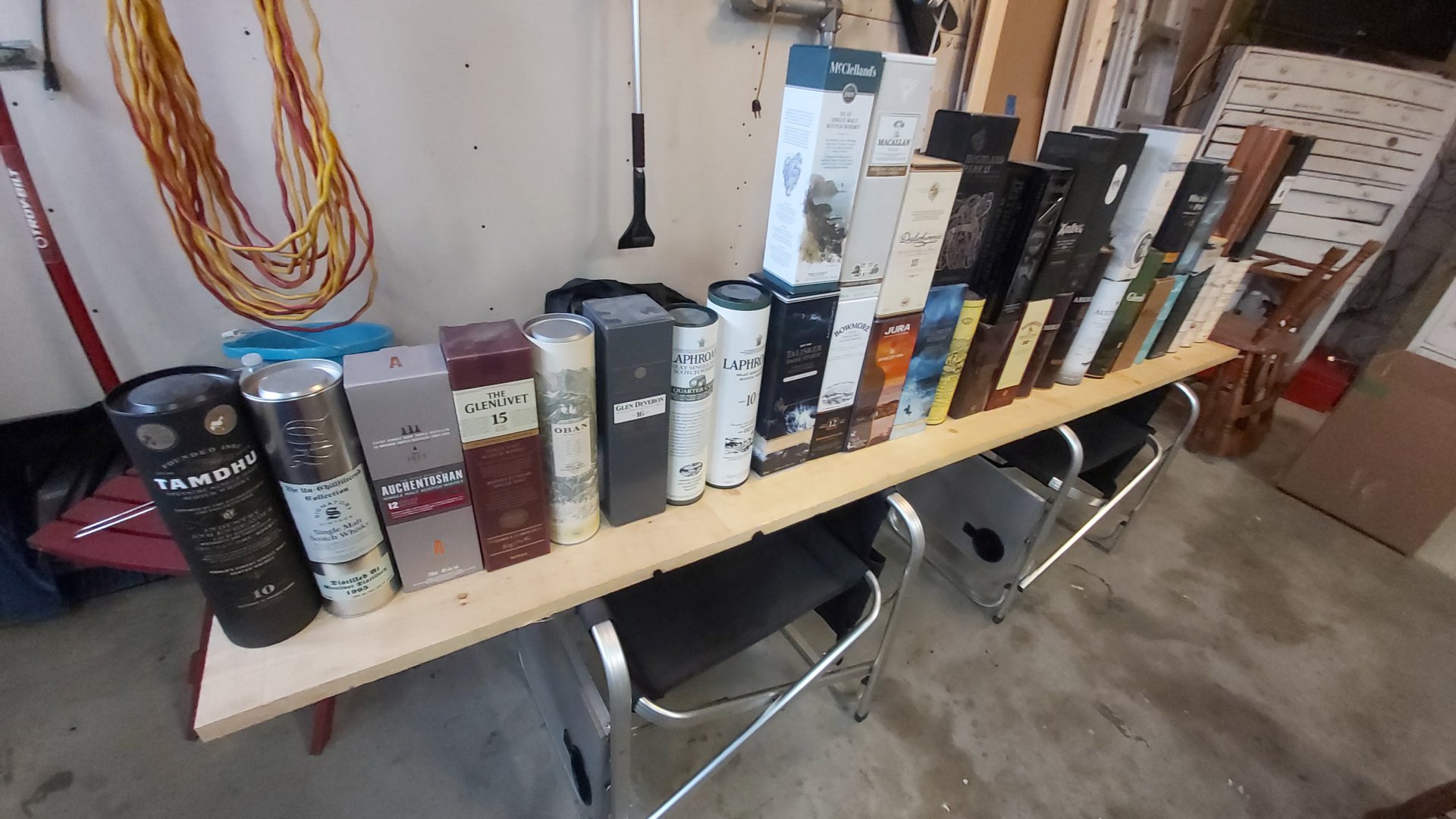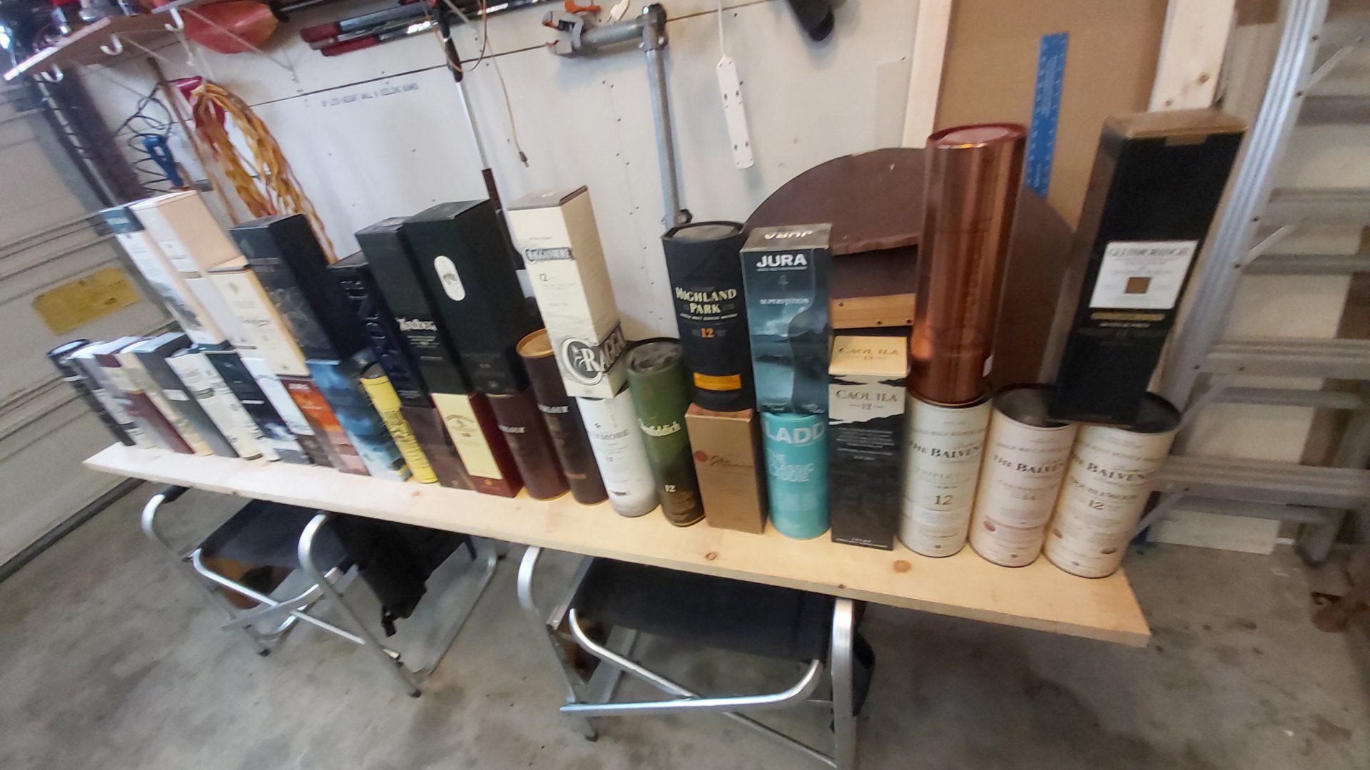 Shit piles up after awhile. I keep my scotch in it's box or container until it's empty then I throw them away. Same with bottles. I keep some of the cooler bottles for projects, the rest go into the recycling bin.As I am putting things back in order in my basement, I am putting things in different places, and trying to decide what to do with women things, like these whiskey boxes. I had them on shelves, sort of on display, but now using those shelves for my sports book collection. Might try and find a place for these in the garage. There 37 of these!