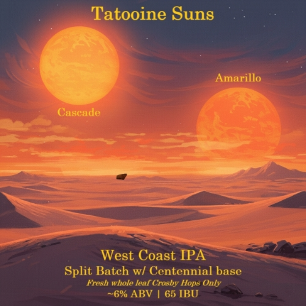 A HUGE thanks to László Simon & Mad Scientist (Hungary) for sending me these amazing fresh Crosby hop samples of Cascade, Centennial & Amarillo, which are some of my favourite hops. After it was sent, it was quickly decided that I had to do a classic West Coast IPA for this unique opportunity, and the best way to express them in one brew was to do a split batch. The Centennial base provides a strong backbone of resin and pine, with a firm but round bitterness.